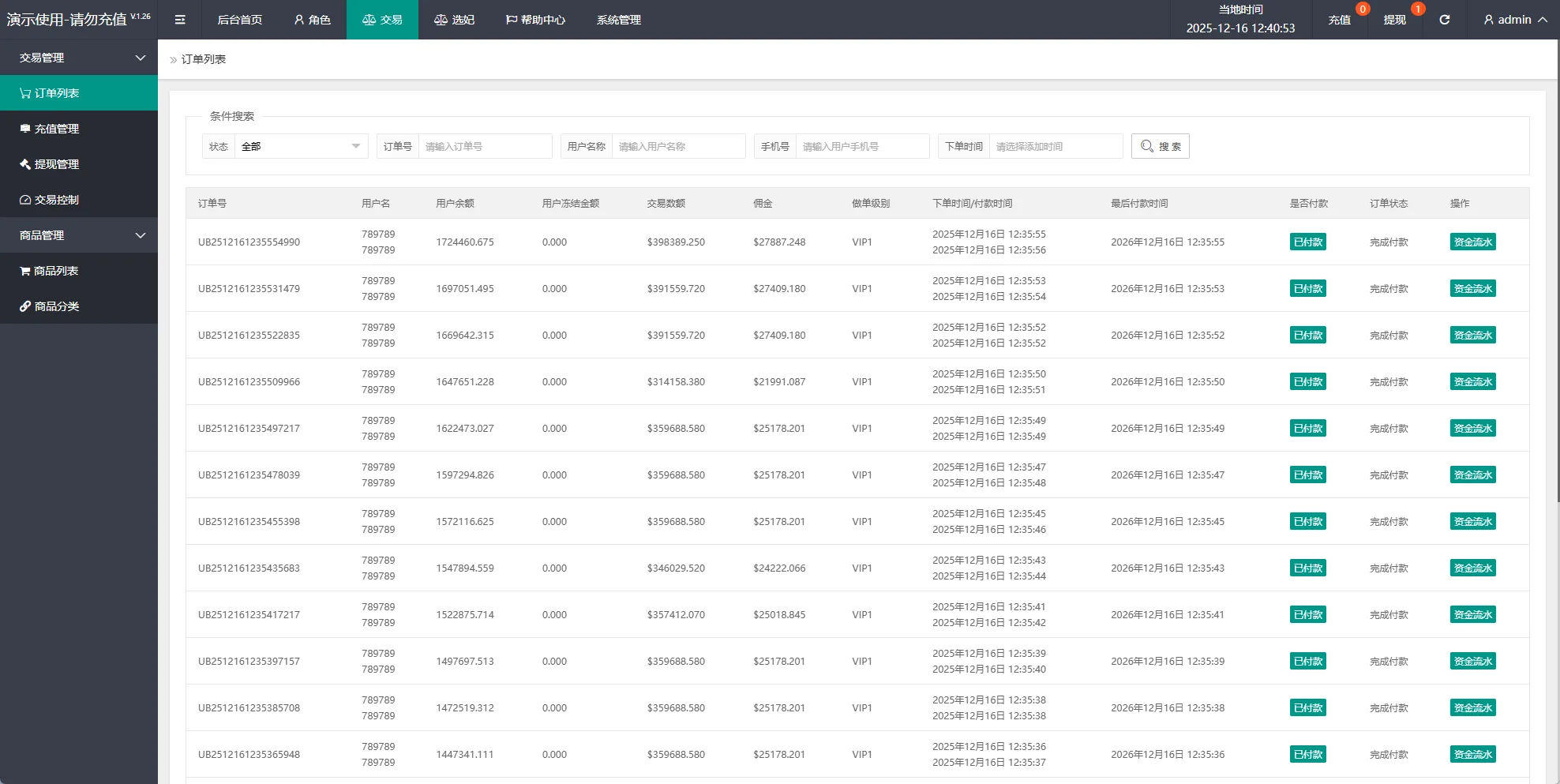 系统支持信用分,连单卡单等功能