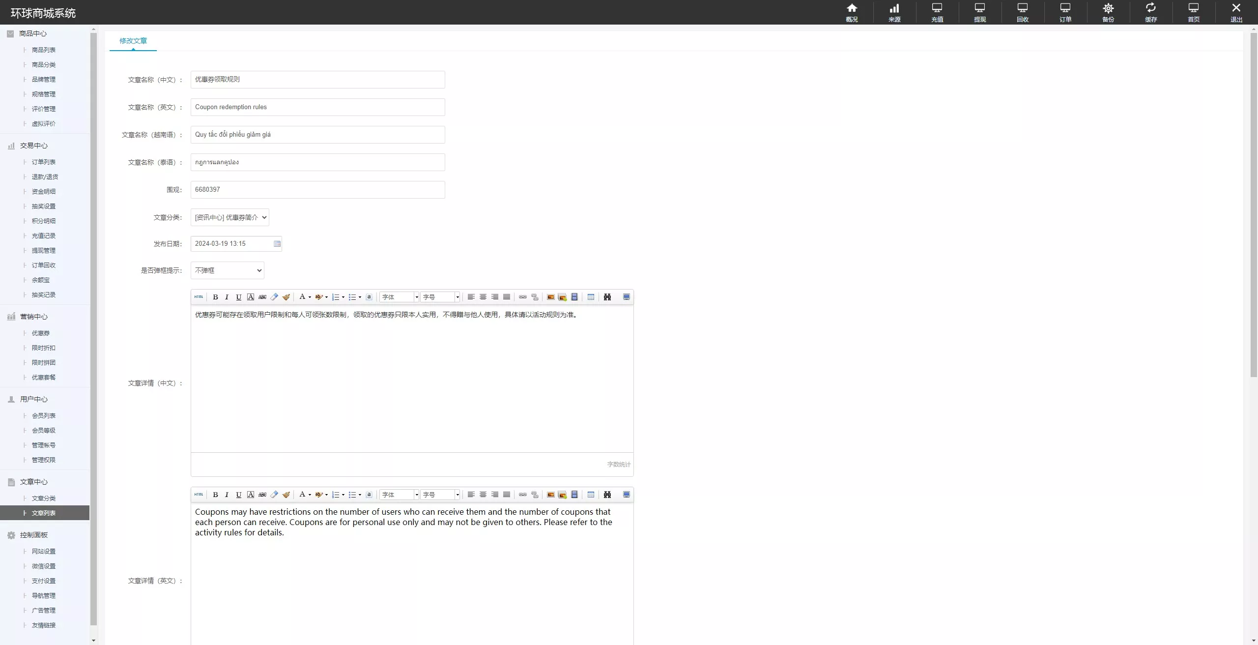 多端覆盖与语言支持: 系统全面支持 PC端、手机端(H5),并内置四国语言切换功能,后台可灵活修改,助力您拓展国际市场。