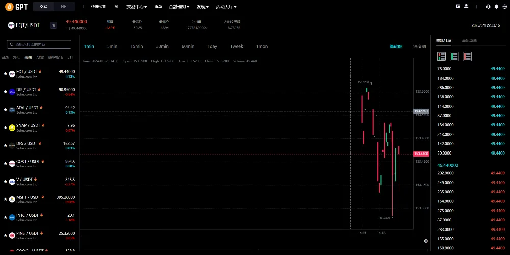 美股股票虚拟币等k线波动完美