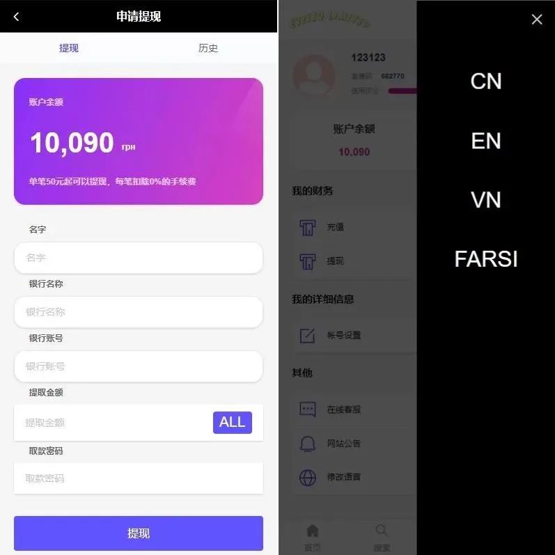 前端UI重新二开定制,新增多语言支持,包括中文、英文、越南语、波斯语、乌克兰语