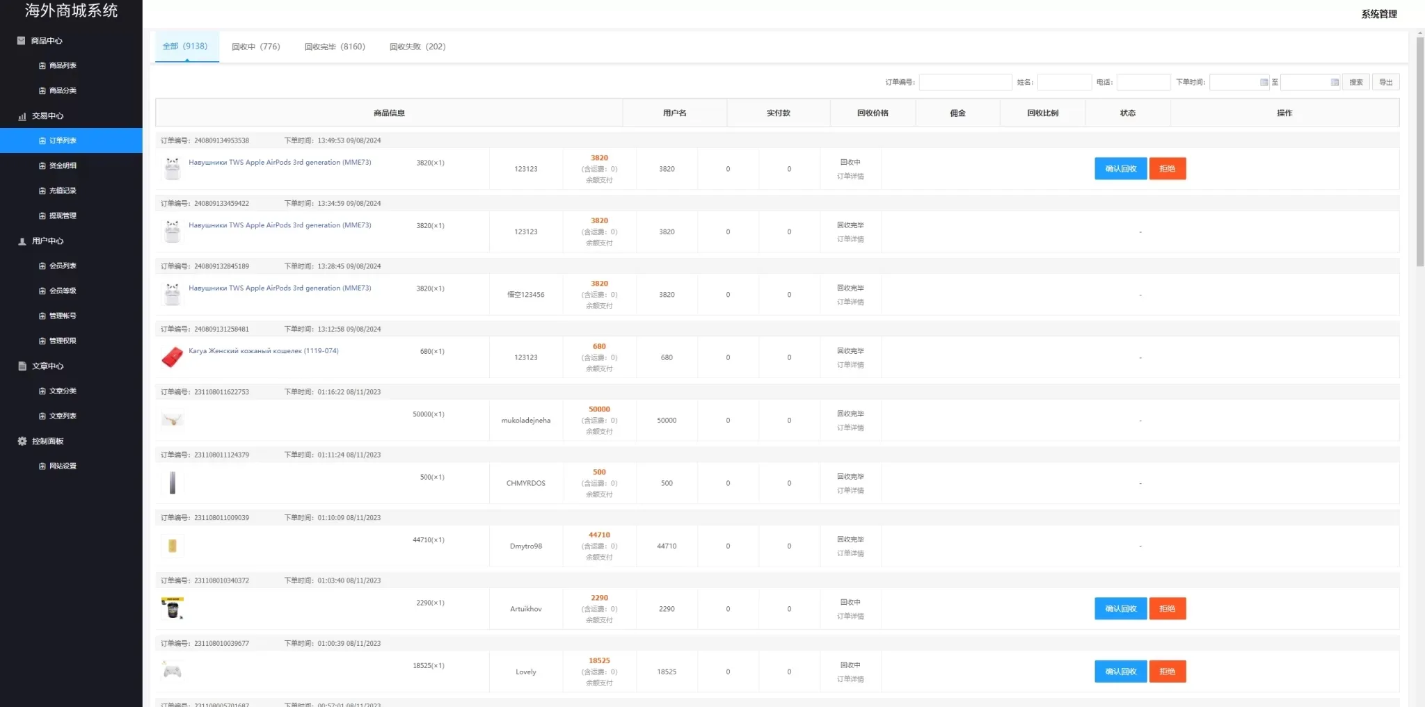 用户提交回收订单,后台可自定义输入回收价格,支持订单价格自定义调整,方便管理操作